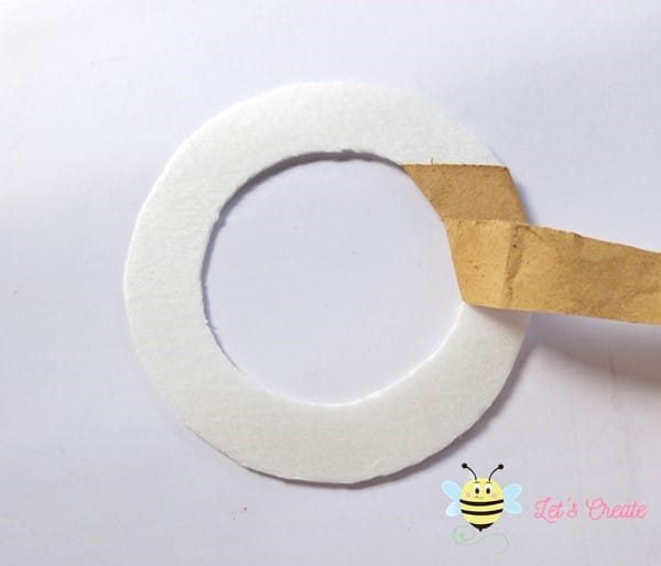 Now, start wrapping the Christmas wreath base using brown paper.